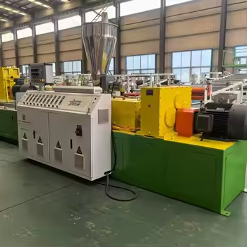 Ово је основна фаза целог производног процеса. Помешани прах се усисава у резервоар конусног екструдера са два пужа преко вакуумског пуњача.