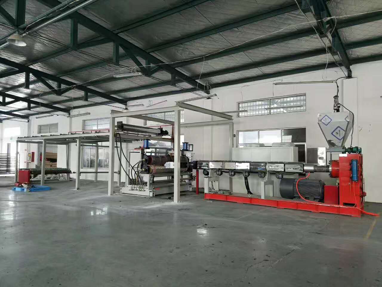ТПЕ/СБС/ПВЦ композитна линија за екструзију тепиха за аутомобилеје аутоматизована континуирана производна линија посебно дизајнирана за производњу вишеслојних тепиха од композитних тепиха за аутомобиле. Ова напредна екструзиона линија, кроз прецизну конфигурацију, комбинује полимерне материјале са различитим функцијама (као што су површински материјал за тепихе, средњи материјал за јастуке и доњи материјал против клизања) у производ за простирке који је у складу са обликом шасије возила. Цео производни процес прати строги, континуирани пут „сиров материјал → екструзија → мешање → обликовање → сечење → намотавање → готов производ“. Једна производна линија нуди интелигентну производњу „покретање једним дугметом, без надзора“, која захтева само једно или двоје запослених за стабилан рад.