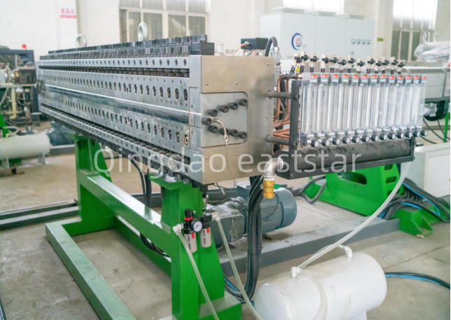 Тхекалупсистем одПП линија за производњу мрежастих панела са отвореним ћелијамаје направљен од висококвалитетног челика за калупе, са ширином отвора калупа од 2200 мм, способан за производњу мрежастих панела са отвореним ћелијама дебљине 2-6 мм. Калуп је опремљен 11-зонским системом грејања са снагом грејања од 4КВ/зони, користећи унутрашње грејање како би се обезбедила уједначена температура. Платформа за вакуумско обликовање и хлађење усваја комбиновани дизајн двостепеног вакуумског хлађења и обликовања плус једностепеног хлађења и обликовања, опремљена вакуум пумпом од 15КВ како би се осигурало стабилно формирање лима. Ове професионалне конфигурације обезбеђују да производи произведени на линији за производњу плоча са отвореним ћелијама имају уједначену структуру мреже и стабилну тачност димензија.