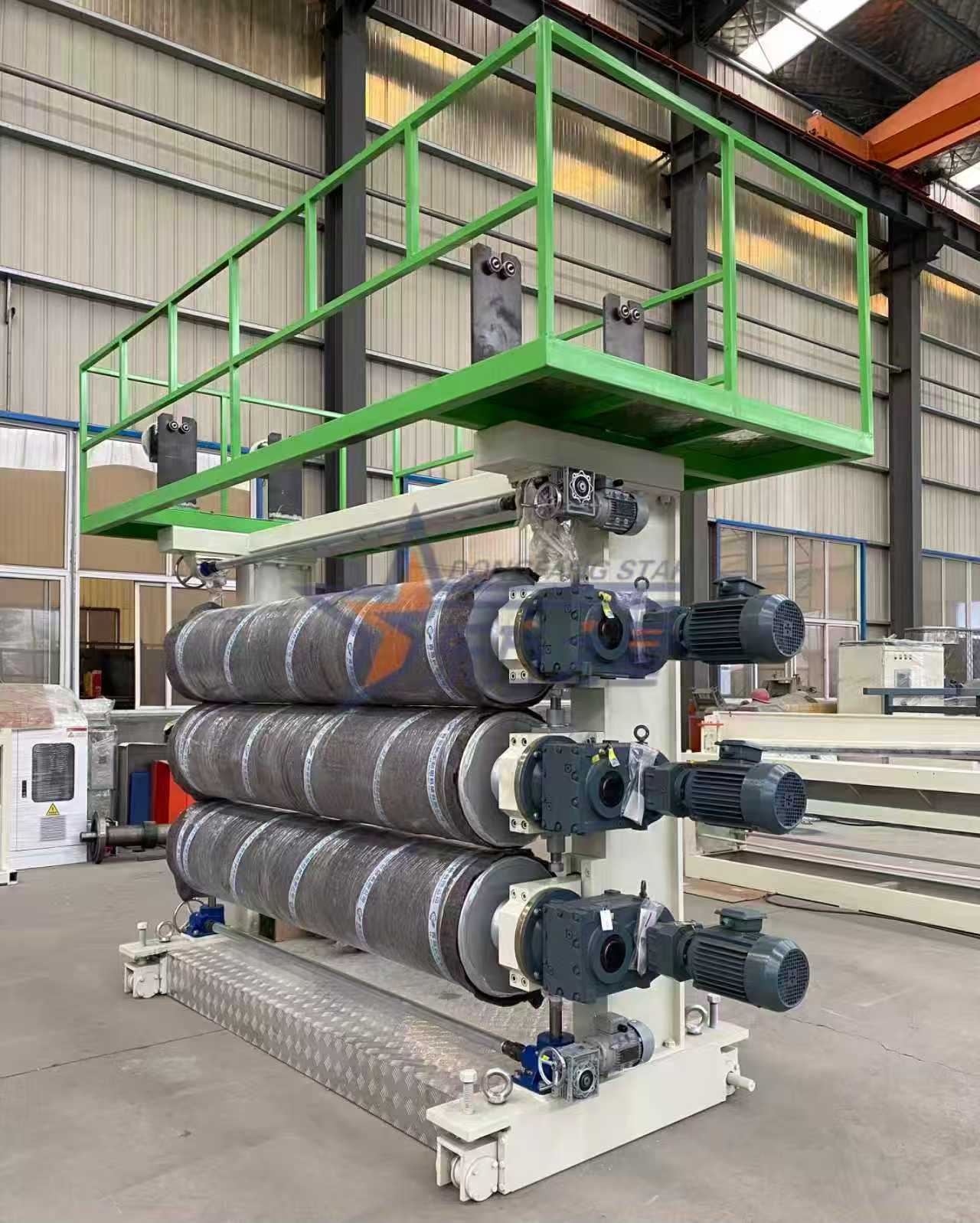 ТхеЛинија за производњу АБС/ХИПС плочатакође укључује централизовани систем сушења, укључујући суву мешалицу и вакуум сушач, за заштиту материјала осетљивих на влагу као што су АБС, ХИПС. Листови се добро осуше пре испуштања. Три ваљка обезбеђују прецизну контролу дебљине и површинску обраду. Након пресовања, лимови се хладе на 8 метара дугом расхладном оквиру са 26 ваљака од нерђајућег челика и затим транспортују вучном машином. ЦелаОпрема за АБС/ХИПС лимовеtкористи међународно познате контролне компоненте, на пример, систем за контролу температуре користи Омрон интелигентне регулаторе температуре из Јапана, нисконапонски електрични уређаји користе Сиеменс АЦ контакторе и тако даље.