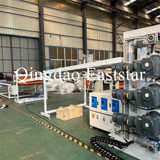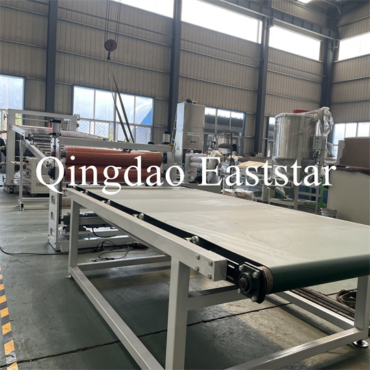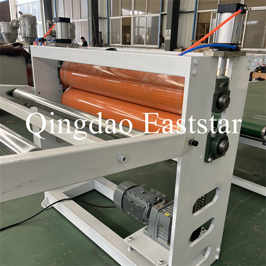 носач, машина за вучу са гуменим ваљцима, машина за шишање и уређај за транспортну траку. ПВЦ екструдер против клизања плоча Опрема, ширина производа