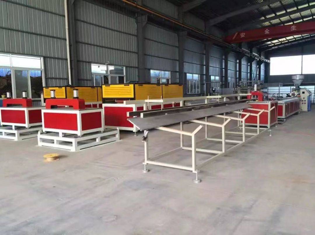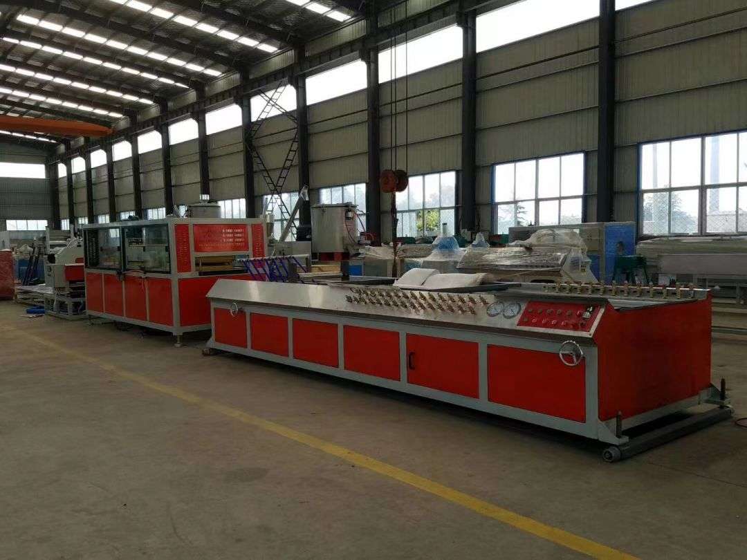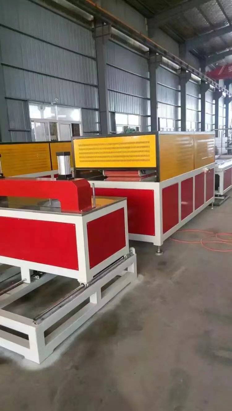 Линија за производњу ПВЦ зидних панела углавном се састоји од конусног екструдера са два вијка, стола за вакуумско обликовање, трактора, машине за сечење и сталка за пријем материјала.