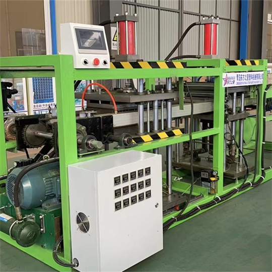 Технички параметар машине за вакуумско формирање посуде за семе Спецификација ширине коришћеног листа: 300 ~ 320 мм, дебљина: 0,8 ~ 2 мм. Површина формирања (максимално): 400*600 мм, радна ефикасност 15~20 пута/мин. Коришћена снага: трофазни четворожични 380 волти, максимална снага 25КВ Хидраулички притисак: 100Т Спољна величина (мм) дужина, ширина и висина) 3600мм*980мм*1500мм