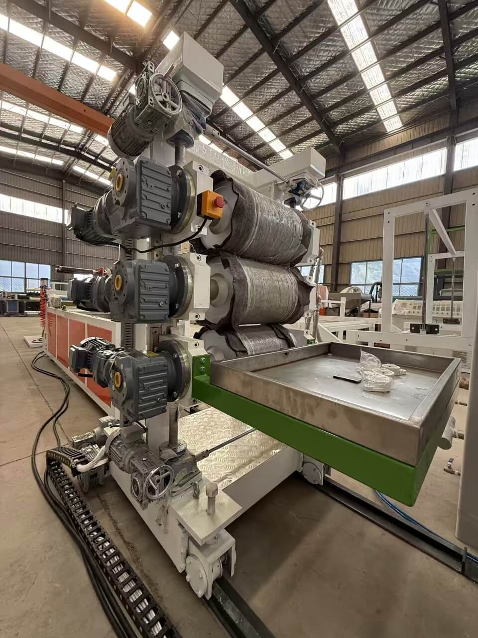 Линија за екструзију широких листова ТПУ/ПЕ/ПП/ПС-300 је дизајнирана за обраду пелета или здробљених мешавина ТПУ, ПЕ, ПП и ПС. Са производним капацитетом од **60-100 кг/х**, линија укључује компоненте водећих брендова као што су Сиеменс и Омрон. Поседује матрицу за листове од 0,8-3 мм, календар са три ваљка и машину за намотавање, обезбеђујући висококвалитетан излаз. Опрема испуњава строге стандарде квалитета и укључује свеобухватну техничку документацију за једноставно руковање и одржавање.